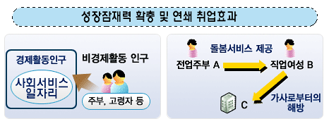 이처럼 사회서비스는 복지수준을 높이고, 일자리를 제공할 뿐만 아니라 비경제인구의 활동을 유도해 성장잠재력을 높이는 일석삼조의 효과가 기대된다.