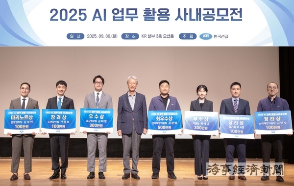KR 한국선급이 전 직원 대상 AI 활용 사내 공모전을 열고 온실가스 데이터 검증과 PSC 위험도 예측 등 현장 혁신 사례를 발굴했다. 접수된 35건 가운데 서류 심사와 발표 평가를 거쳐 7명이 최종 수상자로 선정됐다.