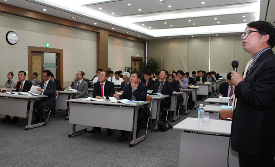 '혼승선박의 해기선원 의식'과 '해기선원 가족의 생활의식'조사 연구는 지난 2011년 4월부터 11월까지 3,000명을 대상으로 설문(배포 3,000부, 유효회수 1,500부)을 실시하여 분석한 결과물로 발간됐다.(사진:민홍기 한국해기사협회장이 인사말을 하고 있다)