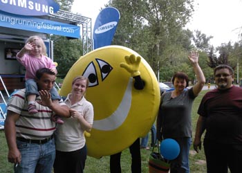 (사진:다양한 종교, 문화, 국경을 아우르자는 취지의 대회 마스코트와 함께 현지인들이 즐거운 시간을 보내고 있다. 삼성전자는 이번 중동유럽6개국에서 '2007 삼성러닝페스티벌'을 개최, 사회공헌과 스포츠마케팅이 결합된 새로운 마케팅을 펼치며 현지의 큰 호응을 얻었다)