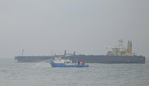 7일 유조선 충돌사고 후 오전 8시30분부터 운영중인 해양수산부 중앙사고수습본부 는 해경함정 등 36척을 5개 편대로 구성하여 유처리제를 분산 처리하는 등 야간방제 활동을 계속하고 있다.