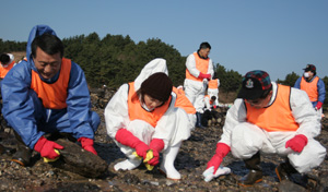 해양수산부 본부와 인천해양수산청, 평택해양수산청 직원 500여명과 홍보 대사 바다양의 팬크럽 100여명 등이 19일 대통령 선거 투표를 마치고 충남 태안 유류유출사고 피해현장에 집결하여 방제작업을 벌였다.