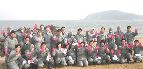 지난 12월 7일 발생한 기름유출사고로 검은 기름띠가 태안반도 전체로 번져 해당 지역민들의 가슴이 새까맣게 타들어 간다는 소식으로 물류IT전문기업 케이엘넷(대표 박정천 www.klnet.co.kr)은 성금 모금과 함께 태안반도 살리기 자원 봉사활동에 참가 했다. (사진: 자원봉사활동에 참가한 임직원의 모습)