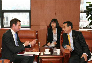 방한중인 윌럼 오스터빈(Willem Oosterveen) 유류오염손해보상국제기금(IOPC) 사무국장 일행은 17일 해양수산부를 예방해 강무현 해양수산부장관과 최근 발생한 유류오염사고로 인한 어민들의 피해 보상 방안에 대해 협의했다.