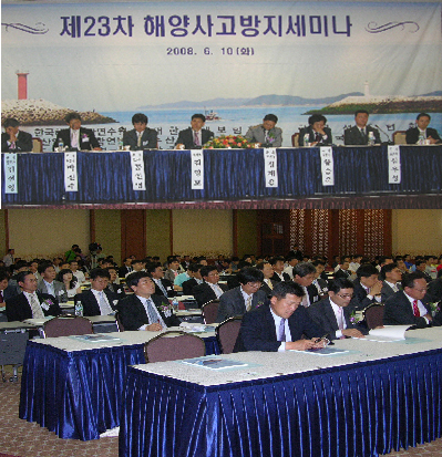 한국선주협회, 한국해양수산연수원 등 16개 국토해양 유관단체가 공동주최하고 중앙해양안전심판원(원장 이인수)이 후원하는 제23차 해양사고방지세미나가 이재균 국토해양부 제2차관을 비롯한 500여명의 관련단체 종사자들이 참석한 가운데 10일 부산 벡스코 컨벤션홀에서 열렸다.
