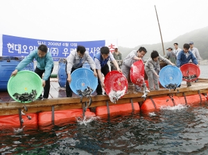 현대오일뱅크(대표 : 서영태)가 13일부터 3일동안, 충남 서산시 대산읍 대산공장 인근 삼길포와 비경도 해역 일대에서 20㎝~25㎝ 정도의 우럭 중간 성어 10만수(약 1억 2천만원 상당)를 방류하는 행사를 가졌다.