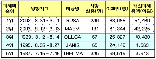 ▶ 태풍 피해규모 순위 ◀