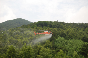 산림항공관리본부는 매년 충남,전남,경남지방과 7개 광역시 도에 분포된 밤나무 산주들의 소득증대를 위하여 대대적인 항공방제 서비스를 하고 있으며, 올해에도 7월 중순부터 8월 말까지 밤나무임지 4만8천여ha에 대한 항공방제를 실시하며 방제 시 돌발적인 이상기후 등에 의한 사고발생에 대비하여 지역별로 승무원 교육, 헬기 안전점검, 안전토론회 등 사전 안전대응을 완비하고 항공방제를 실시할 예정이다.