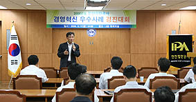 인천항만공사가 업무과정에서 혁신을 생활화하고 그에 따르는 보상체계를 구축하기 위해 11일 ‘경영혁신 우수사례 경진대회’를 실시한 결과, 건설기획팀(팀장 곽훈)이 제출한 ‘항만배후부지 조기 확보를 위한 투기장의 단계별 개발’ 사업이 2006년 상반기 최고 경영혁신 사례로 선정돼 최우수상과 함께 상금 150만원을 받았다.
