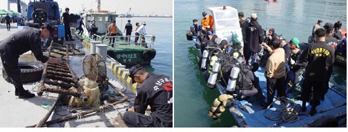 평택지방해양항만청은 가을철을 맞이하여 깨끗하고 안전한 항만가꾸기행사의 일환으로 지난 10월12일 한국수난구조대 소속 스쿠버 회원 등 지역단체 등과 함께 동측 관리부두 인근에서 수중에 침적되어 있는 해양폐기물을 수거하는 행사를 가졌다.