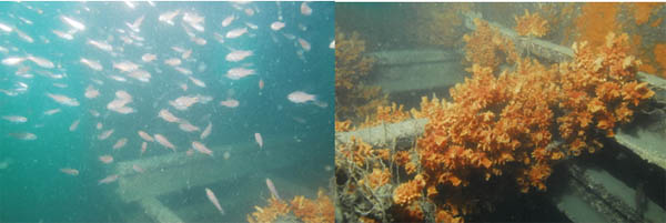 연구조사팀은 이러한 폐철도차량의 장점 때문에, 인공어초 주변에 해양 동식물의 성장효과가 두드러지게 나타나고 있다고 밝혔다.