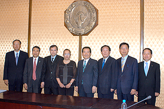 ▲정세균 산업자원부 장관(오른쪽에서 4번째)은 8월30일 우즈베키스탄 호드자예프(Hodjaev) 경제부장관(왼쪽에서 4번째)을 방문, 양국간 에너지·자원협력과 산업협력에 대해 의견을 나눴다.