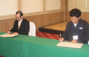 노사는 신뢰를 바탕으로 상대방 입장에서 배려하고 존중하는 협력적 노사 관계가 필요하다는 인식아래 공단 사용자위원 대표(이용우 이사장)와 근로자위원 대표(강홍묵과장 사진右)는 노사 화합 공동선언문에 서명하고 교환함으로써 새로운 노사관계 구축하고 건설적인 조직변화와 단합된 조직구성을 지향하기 위해 노력할 것을 다짐했다.
