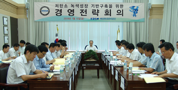해양환경관리공단(이사장 이용우)은 지난 7월 10일 경영전략회의를 개최하여 2009년 저탄소 녹색성장 사업의 적극적 추진을 위한 상반기 경영성과 및 현안과제를 점검하고 향후 추진방향에 대한 논의를 가졌다.
