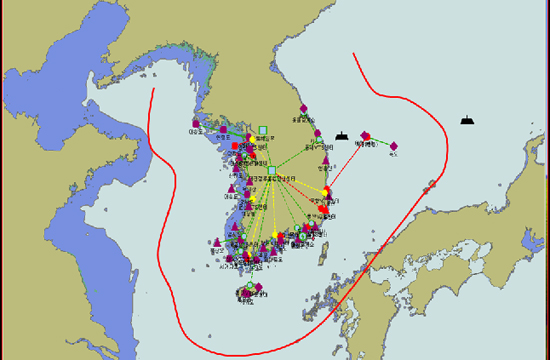 국토해양부는 해양사고 예방을 위해 선박자동식별장치(AIS)를 통해 연안운항 선박에 해상 작업, 훈련, 조사, 사고정보 등 안전정보를 제공하고, 휴대폰을 통해 해운선사의 안전관리자에게 같은 내용의 문자메시지 서비스를 실시할 계획이라고 24일 밝혔다.(사진:바다안전 문자서비스 범위도)