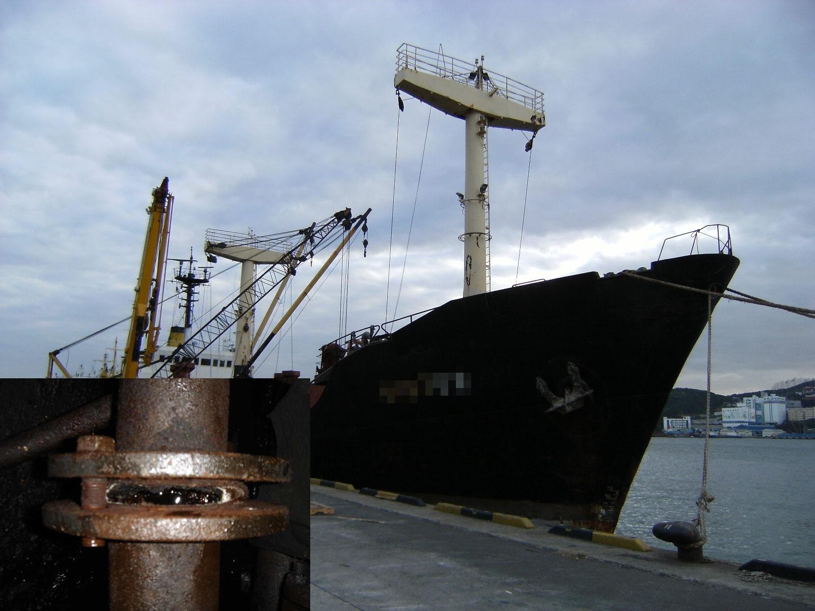 포항해양경찰서(서장 박찬현)는 지난 8일 포항 신항 7번~8번 부두에 폐유 200ℓ를 무단으로 배출하여 인근 해역을 오염시킨 후 부산항으로 도주한 2,000톤급 외국적 화물선 V호를 추적ㆍ적발하였다고 밝혔다. <사진:해양오염 행위 외국적 선박 및 기름배출 흔적>
