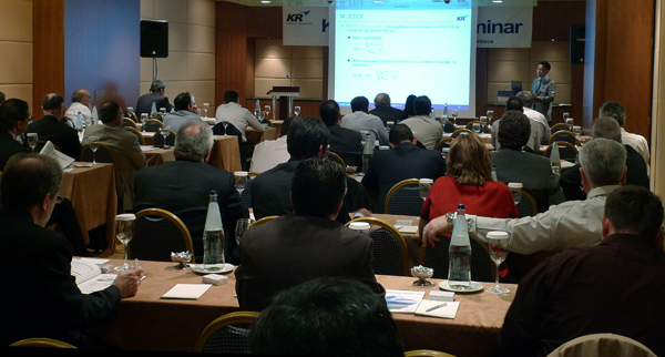 14일에는 최근 국제해사계에서 가장 큰 관심사의 하나인 GHG(Greenhouse Gas Issues at IMO) 문제와 선박재활용협약(Ship Recycling Convention)에 관한 주제로 기술세미나를 개최하여 참석자들로부터 폭발적인 호응을 얻었으며, 15일에는 그리스 Polembros Shipping의 대표이사 겸 한국선급 그리스위원회 의장인 Mr. Adam Polemis의 주재로 제5회 KR 그리스위원회를 개최하여 한국선급의 현황 및 항만국 통제(PSC) 실적 등에 대한 설명과 세계 해운시장의 동향 등에 대한 활발한 토의 등을 전개하여 위원회 멤버들로부터 좋은 반응을 얻었다.