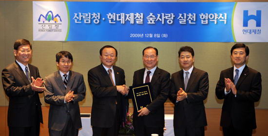 산림청(청장 정광수)과 현대제철(부회장 박승하)은 오는 8일 오전 서울에서 기후변화 대응 및 범국가적 녹색성장 노력에 부응하고 숲을 건강하게 지키고 가꾸는데 상호 협력하는 내용을 골자로 하는 '숲사랑 실천 업무협약'을 체결했다.