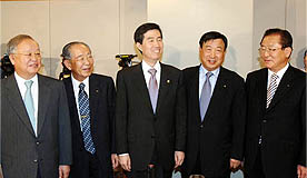 권오규 부총리 겸 재정경제부 장관은 25일 강신호 전국경제인연합회 회장, 손경식 대한상공회의소 회장, 김용구 중소기업협동조합중앙회 회장, 이희범 무역협회 회장, 이수영 경영자총협회 회장 등 경제 5단체장과 간담회를 갖고 이번주 발표될 ‘기업환경개선 종합대책’을 설명하고 의견을 교환했다.