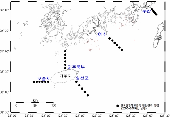 상승폭은 해역마다 약간의 차이를 보이고 있는데 부산해역은 약 0.2℃, 여수와 제주북부 해역은 약 1.7℃, 제주도 모슬포는 약 0.7℃의 상승폭을 보임으로써 남해 동부해역보다는 중서부해역의 상승폭이 약간 높게 나타났다.
