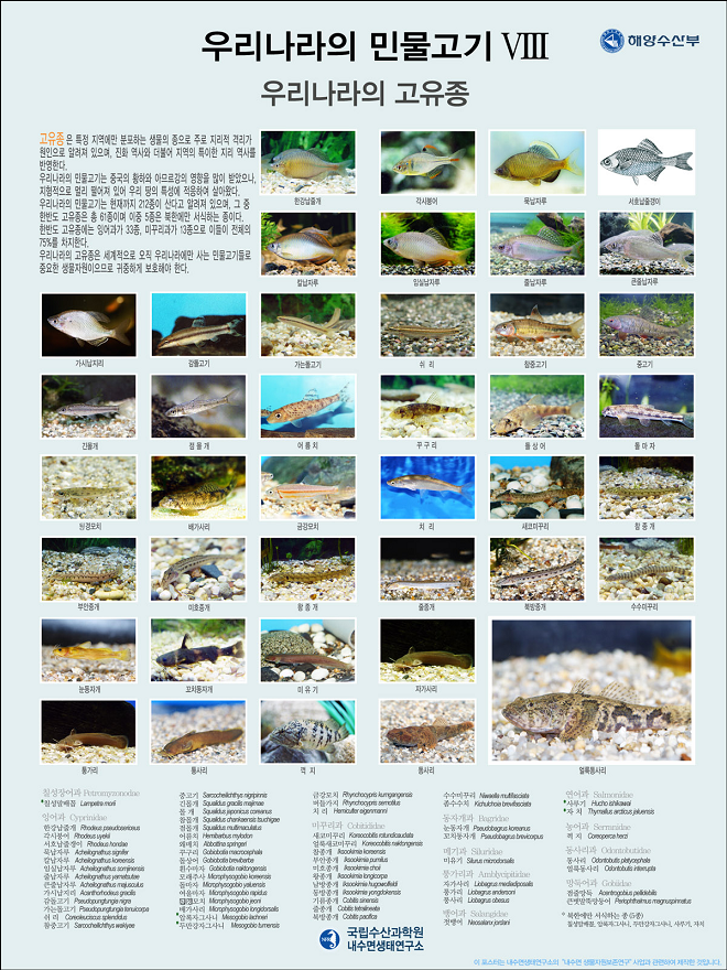 국립수산과학원 내수면생태연구소에서는 우리나라에만 서식하는 고유어종에 대한 홍보용 포스터를 제작하여 배부할 계획이다.