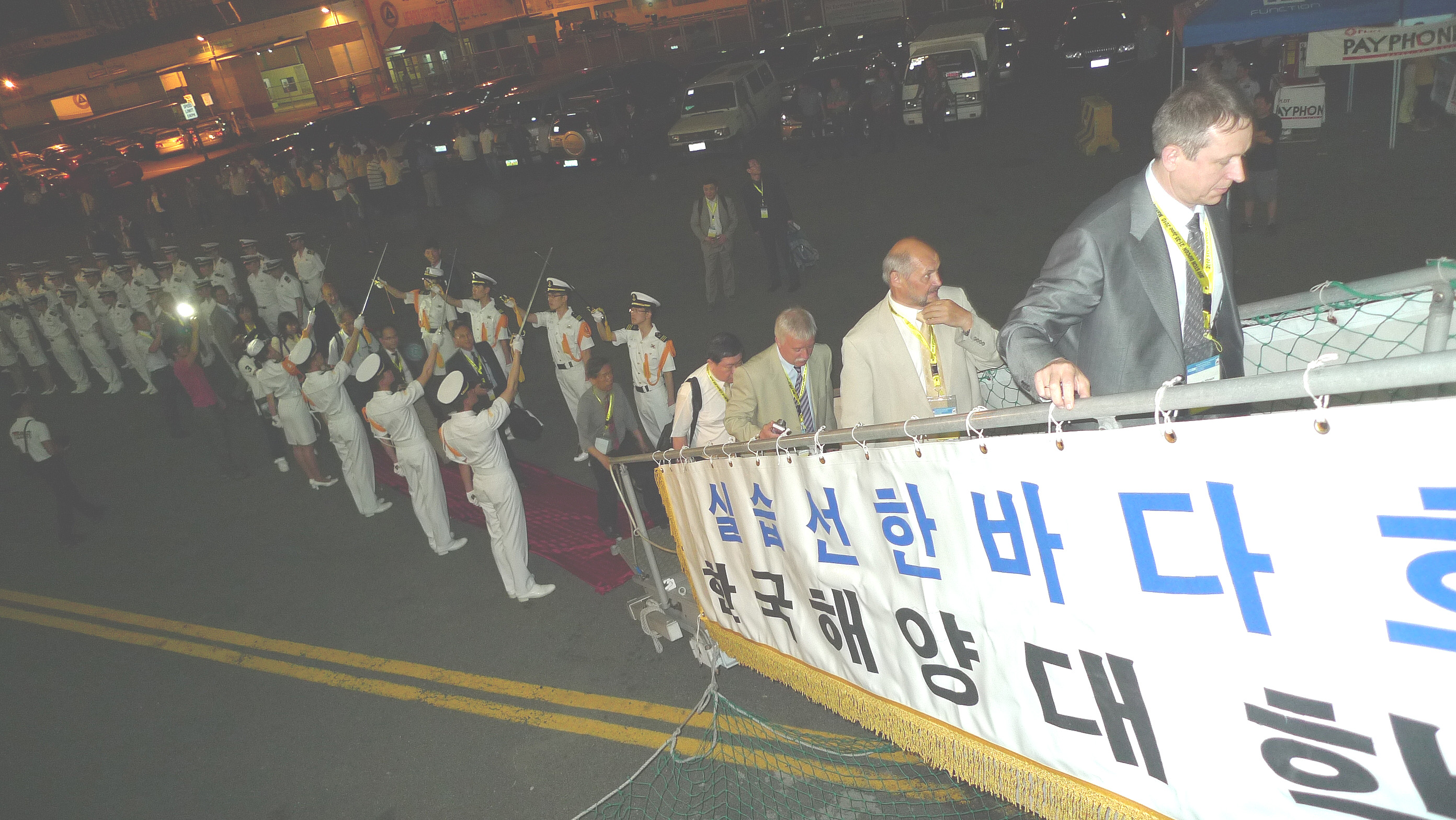 특히 22일 저녁에는 이번 외교 회의에 참석한 미트로풀로스 IMO 사무총장을 비롯한 각국 대표들을 한바다호에 초청, IAMU 의장인 오거돈 총장 주최로 선상만찬회를 열어 홍보효과를 극대화하기도 했다.