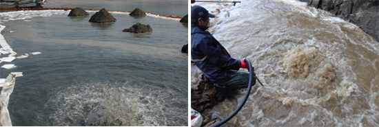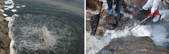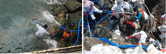 에어제트 이용해 침전 바위 등 기름 제거성공