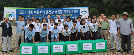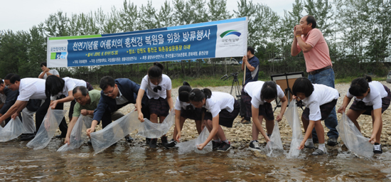 8일 어름치 치어 3천마리 한강 수계인 홍천강에 방류