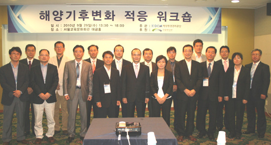 해양환경관리공단이 주관하고 국토해양부가 후원한 이번 워크숍은 해양환경부문 기후변화 적응방안을 논의하는 자리로 국내 해양 및 각계 전문가 60여 명이 참가하여 심도 있고 뜻 깊은 자리가 됐다.