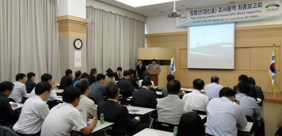 해양환경관리공단(KOEM, 이사장 이용우)은 지난 1988년 침몰한 유조선 경신호 잔존유 제거작업을 위한 사전 조사용역을 성공적으로 종료하고 10월 12일(화) 공단 본사 5층 대회의실에서 국토해양부, 관계기관(해양경찰청, 경북도청, 한국해양연구원) 및 관련 업/단체 14인과 공단 임직원 등 40여명이 참석한 가운데 이같은 결과의 최종 보고회를 개최했다.