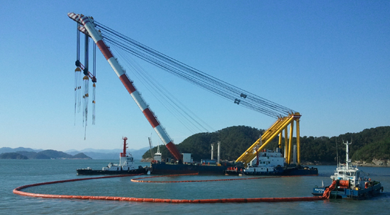 해양환경관리공단의 기중기선단은 매년 한 두 차례의 소화방제훈련을 실시하여 화재 및 오염사고 등 만일의 사태에 대비하고 있다.