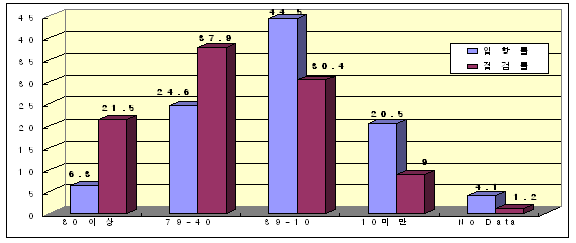 평균 결함률은 85.8%이고, 출항정지율은 7.1%로 선종별로 보면 냉동운반선이 가장 높고, 선령별로는 30년 이상 노후선이 가장 높은 것으로 나타났다.