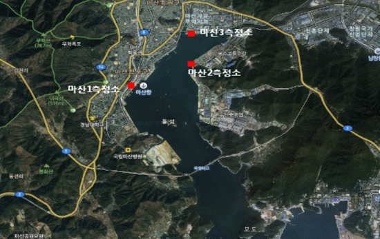 해양환경관리공단(KOEM, 이사장 곽인섭)은 5월 중순부터 마산만에서 용존산소 농도 3 ppm(mg/L) 이하의 빈산소수괴가 발생했고, 수온이 상승하면서 진해만 전해역으로 확장될 가능성이 있어 수산물 피해가 없도록 양식어민들의 주의를 당부한다고 8일 밝혔다. (사진:마산해역 수질자동측정소 위치도)