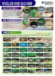국립수과원 내수면양식연구소에서는 내수면 산업 진흥과 민물고기에 대한 국민의 관심도를 제고하기 위해 우리나라 유용 담수어 중 비식용 특수어종을 수록한 포스터를 발간하여 교육기관 등에 배포한다.