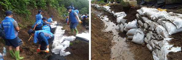해양환경관리공단 대산지사(지사장 최석윤) 갯벌사랑봉사단은 지난 12일 집중호우로 피해를 입은 경기도 포천시 화현면 일대를 찾아 수해복구 자원봉사에 구슬땀을 흘렸다.