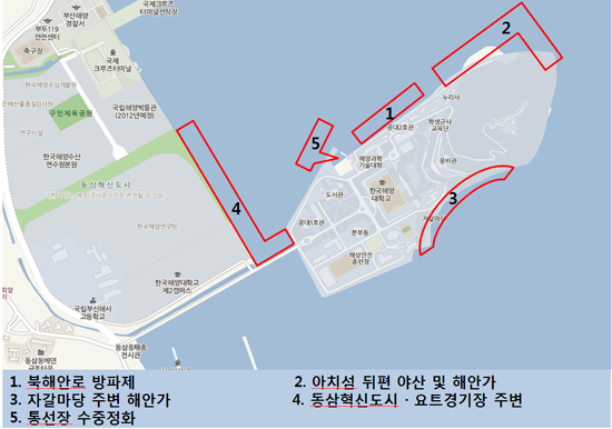 이번 정화 활동에는 부산지방해양항만청과 영도구청, 해양환경관리공단, SMS특수구조단, 해군 3함대 소속 부산항만방어전대, 부산해양경찰서 등에서도 공동으로 참여해 조류에 밀려온 쓰레기와 낚시꾼들이 버리고 간 오물 등을 수거하고 수중정화활동을 펼칠 예정이다.<사진:해양환경 정화활동 지역 안내도>
