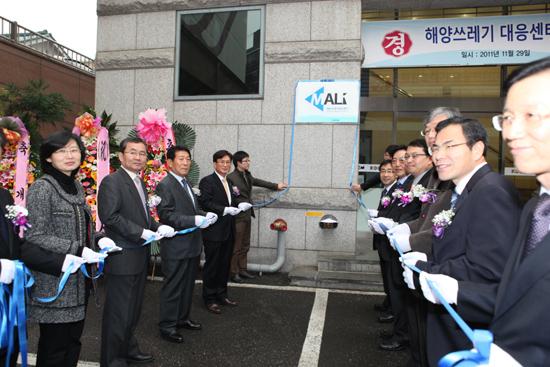 (사진:29일 오전 11시 서울 삼성동 해양환경관리공단 본사에서 곽인섭 이사장 (왼쪽 네 번째) 등 관계자들이 참석한 가운데 ‘해양쓰레기 대응센터(MALI Center)’ 현판식을 가졌다.)