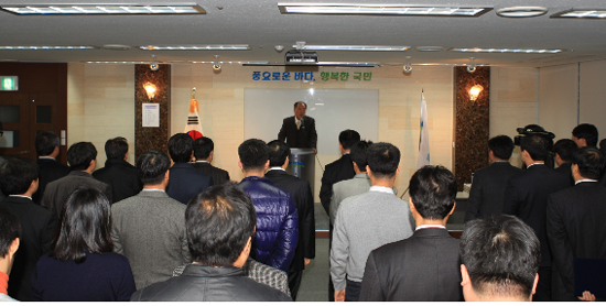 수산자원사업단(이사장 양태선)은 1월 2일 본사 대회의실에서 2012년 시무식을 개최하여 ‘한국수산자원관리공단’으로의 출발선에서 희망과 발전을 기원하고 임직원의 의지를 다졌다.