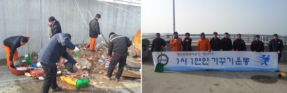 새해를 맞이하여 실시된 이번 1사 1연안 가꾸기 운동에서 800kg의 쓰레기를 수거했으며, 이를 통해 대산항을 이용하는 선사 및 해운업체에 긍정적인 공단 이미지를 심어주었다.