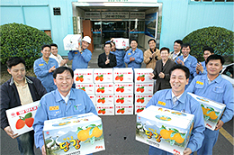 공장으로 직접 찾아온 방동마을 이충순 이장님과 주민들은 자신들이 재배한 단감과 대봉을 구입하는 직원들에게 하나라도 더 담아주지 못해 아쉬워했으며, 부모님 같은 분들이 정성을 담아 재배하신 물건을 받아 기뻐하는 모습 속에서 이웃간의 정겨움이 가득했다.