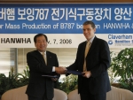 (Claverham/영국)社는 꿈의 항공기 (Dream Liner)라 불리는 美 보잉사의 ‘B787’ 여객기에 적용될 ‘전기식 구동장치’ 공동개발사업에 참여, 11월 7일 중구 장교동 소재 한화빌딩 21층 회의실에서 양산 납품 계약을 정식 체결(사진)했다.