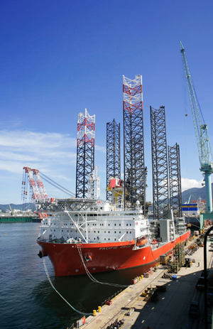 특히, 이 선박은 초속 20m의 바람과 2.5m 높이의 파도가 치는 열악한 해상 환경에서도 풍력발전기를 설치할 수 있도록 제작된 것이 특징이다.