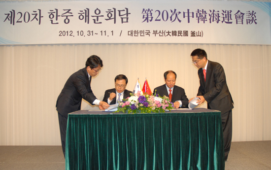10월31일 양일간 부산 20차 한중해운회담에서 합의해