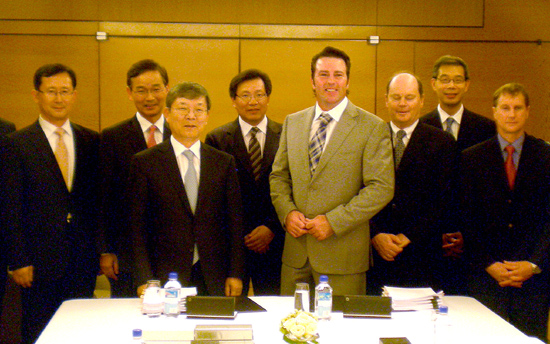 이번 계약에는 같은 크기의 선박 5척을 추가 발주할 수 있다는 옵션 계약이 포함돼 향후 추가 수주도 기대된다. (사진 : 현대중공업 이재성 사장(왼쪽 네 번째)과 시스판社 공동 CEO인 게리왕(Mr. Gerry Wang, 왼쪽 다섯 번째), 카일 워싱턴(Mr. Kyle Washington, 왼쪽 여섯 번째) 등 양사 관계자들이 계약서명 후 기념촬영하고 있다.)