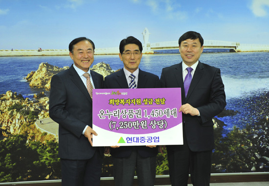 이날 기탁한 상품권은 지역의 기초생활수급가정과 차상위계층 등 어려운 이웃 1천450세대에 지급될 예정이다. 현대중공업은 지난 2010년까지 쌀을 지원해 왔으나, 전통시장 활성화에 도움을 주고자 2011년부터 전통시장 상품권을 전달하고 있다.