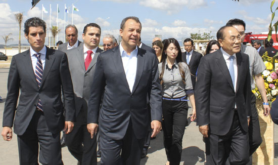 2014년 월드컵과, 2016년 올림픽을 앞두고 있는 브라질은 연방정부 차원의 경제개발 계획으로 현재 대규모 건설투자가 이루어지고 있으며, 건설장비 수요는 꾸준히 증가할 것으로 보인다.(사진:최병구 현대중공업 건설장비사업사장<오른쪽 첫번째>과 세르지우 카브라우 리우데자네이루 주지사<가운데> 등 관계자들이 24일 브라질 공장 준공식 후, 공장 투어를 하고 있다.)