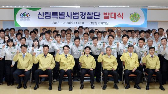 산림청은 30일 산림청 대회의실에서 신원섭 산림청장을 비롯한 간부공무원이 참석한 가운데 산림특별사법경찰단 발대식을 갖고 소나무재선충병 감염목 이동  등 산림훼손 집중 단속에 들어갔다.