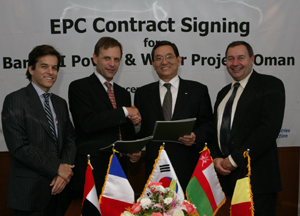 두산중공업은 15일 두바이에서 발주처인 수에즈(Suez Energy International)사 기리셀(Guy Richelle) 사장과 두산중공업 홍성은 부사장 등이 참석한 가운데 오만 바르카(Barka) 2단계 민자 발전.담수 플랜트 공사에 관한 공급계약을 5억1천만 달러에 체결했다.