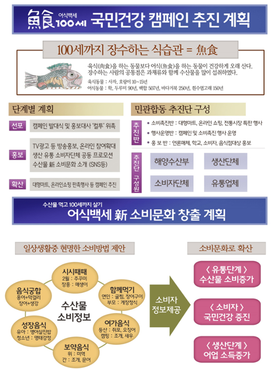 어식백세 캠페인은 패스트푸드와 인스턴트 식품 등으로 자칫 건강을 해치기 쉬운 국민들에게 무병장수의 비결로 알려진 어식(魚食) 문화를 널리 알려 100살까지 건강을 유지하기를 바라는 취지로 기획됐다.