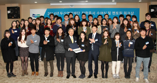 두산연강재단(이사장 박용현)은 27일, 서울 중구 라마다 호텔에서 '2014년 두산연강재단 장학증서 수여식'을 갖고, 총 12억 6천만원의 장학금과 기념품을 전달했다.